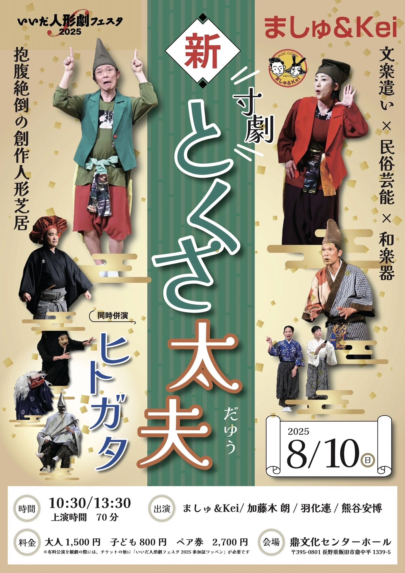 室町時代の狂言を出発地点に、ジャンルを混ぜて大胆にアレンジした「寸劇とくさ太夫」舞台芸能師、音楽道化師による共演をお楽しみください。