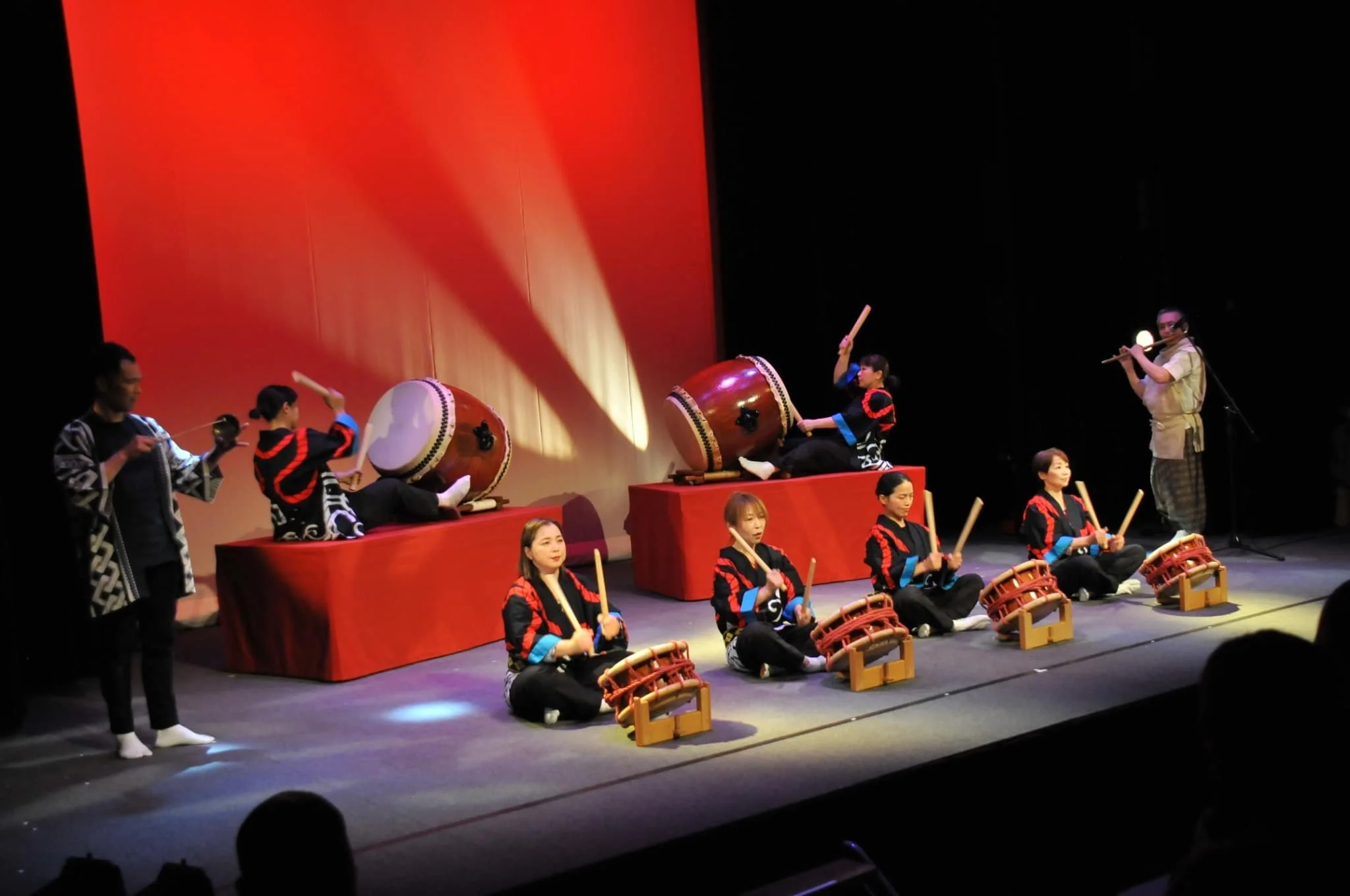 太鼓に三味線、篠笛、胡弓、琵琶や口上、めでたい舞に加えて、ゲスト木村俊介を招いた音舞語りも。
